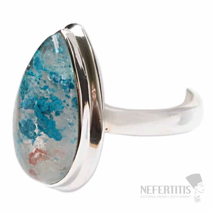 Půvabný stříbrný prsten se vzácným a sběratelsky ceněným přírodním Quantum quattro. Ag 925. Quantum quattro je kombinací čtyř minerálů - shattuckitu, dioptasu, malachitu a chryzokolu. Každý šperk je originální, neopakovatelný a díky barevné kombinaci a uspořádání minerálů podněcuje fantazii, připomíná pohled na Zemi z ptačí perspektivy. Budete mít krásný šperk, který nikdo nepřehlédne, vhodný pro různé příležitosti. Kupujete přímo vyobrazený šperk. Velikost kamene cca 2,1 cm.
