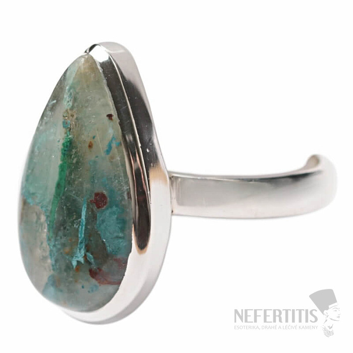 Půvabný stříbrný prsten se vzácným a sběratelsky ceněným přírodním Quantum quattro. Ag 925. Quantum quattro je kombinací čtyř minerálů - shattuckitu, dioptasu, malachitu a chryzokolu. Každý šperk je originální, neopakovatelný a díky barevné kombinaci a uspořádání minerálů podněcuje fantazii, připomíná pohled na Zemi z ptačí perspektivy. Budete mít krásný šperk, který nikdo nepřehlédne, vhodný pro různé příležitosti. Kupujete přímo vyobrazený šperk. Velikost kamene cca 2,1 cm.