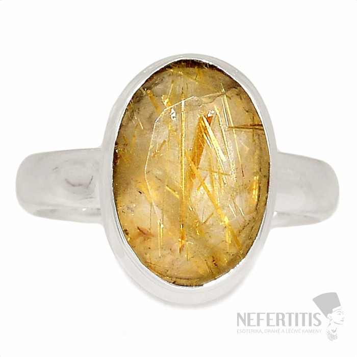 Sagenit křišťál s rutilem broušený prsten stříbro Ag 925 R310