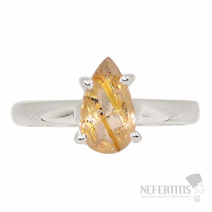 Sagenit křišťál s rutilem broušený prsten stříbro Ag 925 R362