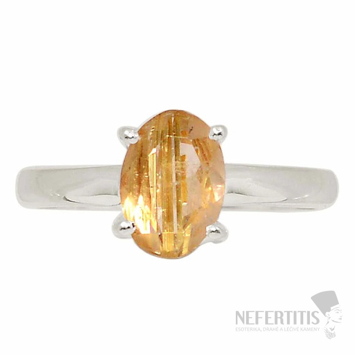 Sagenit křišťál s rutilem broušený prsten stříbro Ag 925 R363