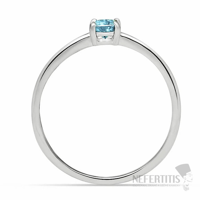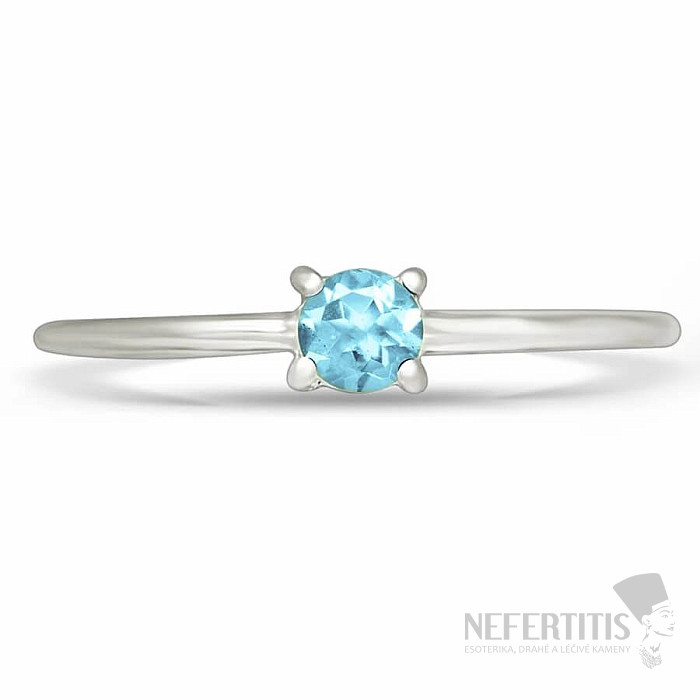Elegantní a jemný, přesto nadčasový stříbrný prsten s broušeným modrým topazem. Ag 925. Velikost kamene cca 0,4 cm. Ilustrativní fotografie, barva kamene se může mírně lišit od fotografie. Vždy však obdržíte šperk srovnatelné kvality.