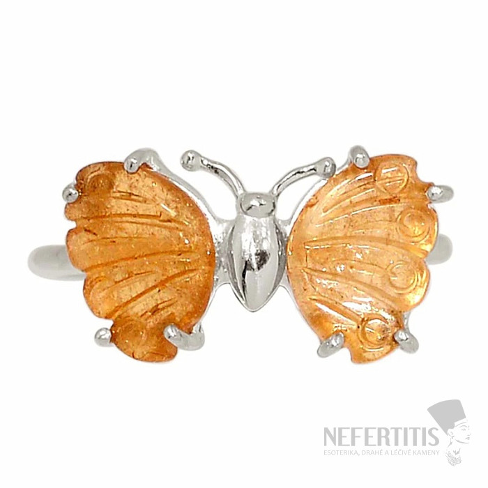 Stříbrný prsten s barevným turmalínem broušeným a leštěným do tvaru motýla. Ag 925. . Kupujete přímo vyobrazený šperk. Velikost části s kameny cca 1,7 cm.