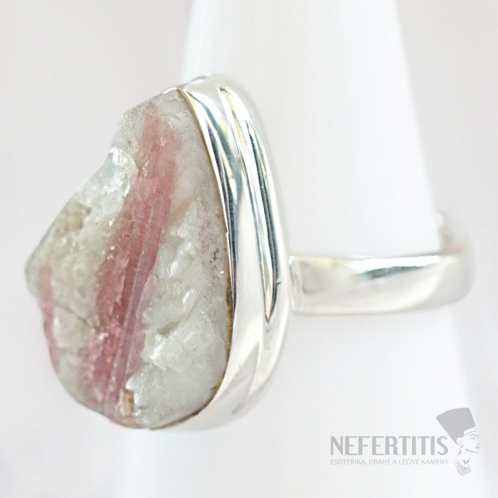 Turmalín rubelit v křišťálu surový prsten stříbro Ag 925 R243
