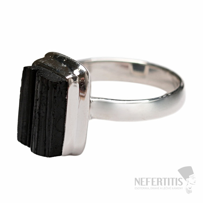 Atraktivní, elegantní, až trochu tajemný prsten z velkého surového černého turmalínu skorylu ve stříbře. Černá barva turmalínu, která krásně kontrastuje s leskem stříbrného rámečku, dává tomuto prstenu eleganci a činí z něj velmi dekorativní šperk. Černé surové turmalíny běžně obsahují prasklinky, je to jejich charakteristický rys a důkaz, že kupujete pravý přírodní tumalín. Ag 925. Velikost kamene cca 1,2 cm. Kupujete přímo vyobrazený šperk.