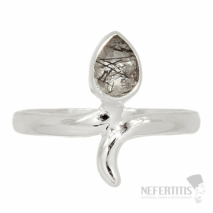 Stříbrný prsten z broušeného křišťálu s černým turmalínem. Ag 925. Kupujete přímo vyobrazený šperk. Velikost kamene je cca 0,8 cm.