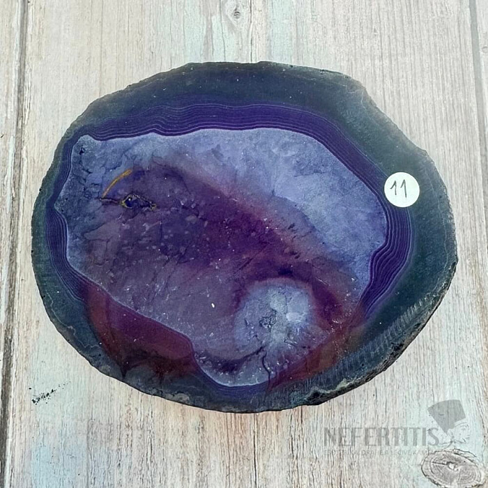 Atraktivní leštěný plátek achátu. Dekorativní prvek, který vzniká rozříznutím a leštěním přírodního achátu. Tento achátový plátek je dobarvovaný. Kupujete přímo vyobrazený kus. Země původu: Brazílie Achátové leštěné… více »