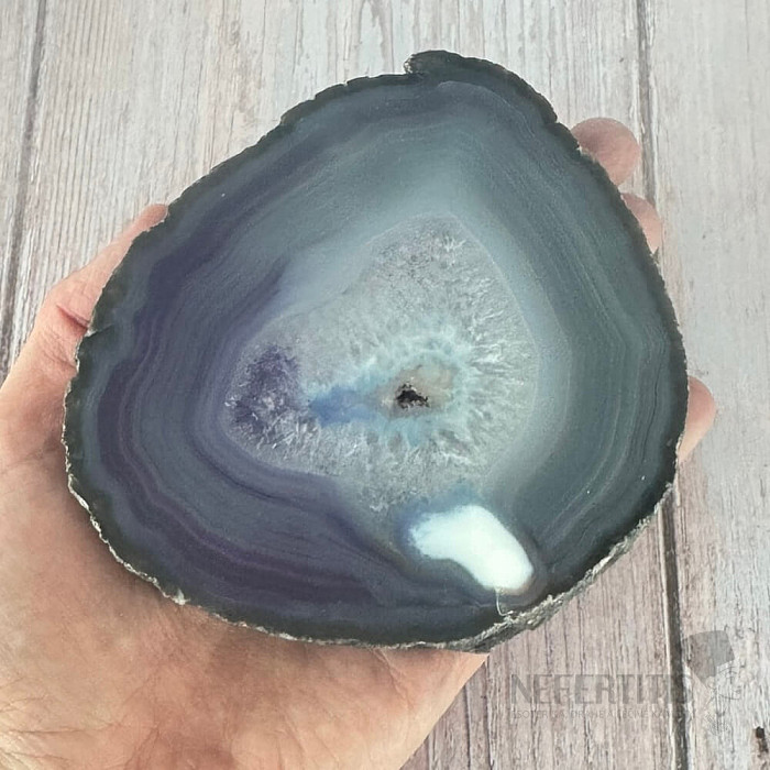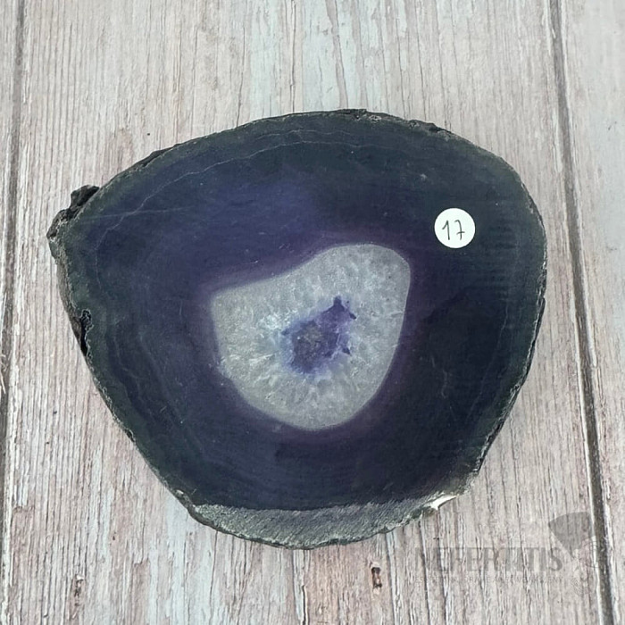 Atraktivní leštěný plátek achátu. Dekorativní prvek, který vzniká rozříznutím a leštěním přírodního achátu. Tento achátový plátek je dobarvovaný. Kupujete přímo vyobrazený kus. Země původu: Brazílie Achátové leštěné… více »