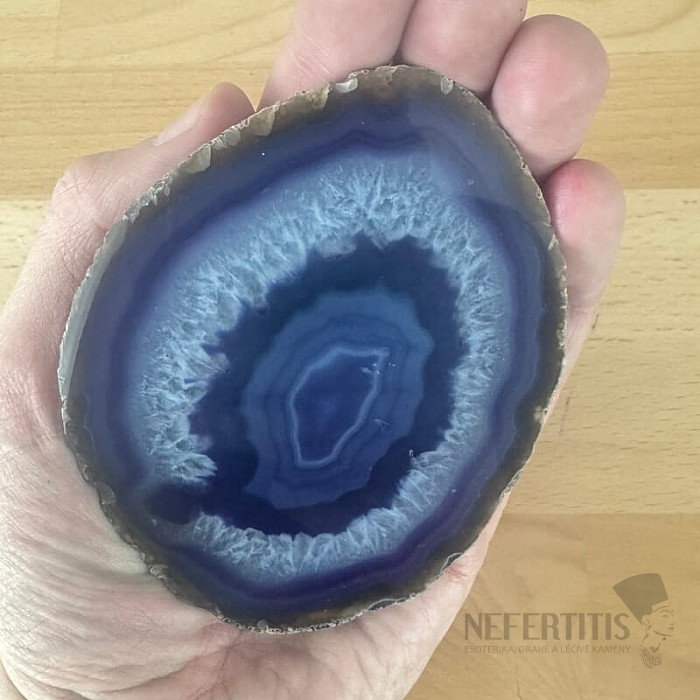 Atraktivní leštěný plátek achátu. Dekorativní prvek, který vzniká rozříznutím a leštěním přírodního achátu. Tento achátový plátek je dobarvovaný. Kupujete přímo vyobrazený kus.