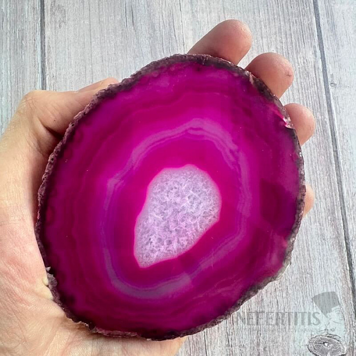 Atraktivní leštěný plátek achátu. Dekorativní prvek, který vzniká rozříznutím a leštěním přírodního achátu. Tento achátový plátek je dobarvovaný. Kupujete přímo vyobrazený kus. Země původu: Brazílie Achátové leštěné… více »