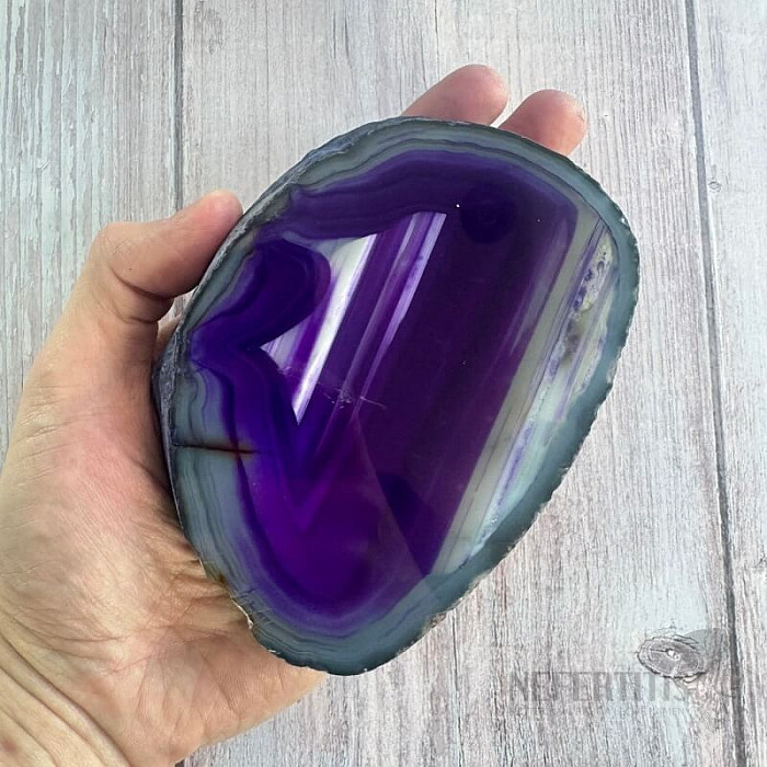 Atraktivní leštěný plátek achátu. Dekorativní prvek, který vzniká rozříznutím a leštěním přírodního achátu. Tento achátový plátek je dobarvovaný. Kupujete přímo vyobrazený kus.
