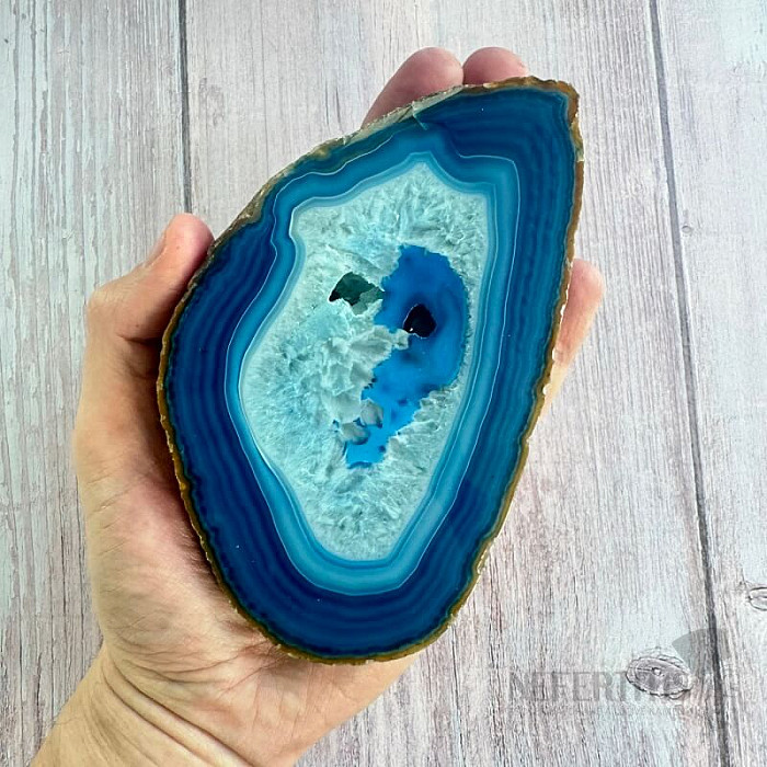 Atraktivní leštěný plátek achátu. Dekorativní prvek, který vzniká rozříznutím a leštěním přírodního achátu. Tento achátový plátek je dobarvovaný. Kupujete přímo vyobrazený kus. Země původu: Brazílie Achátové leštěné… více »