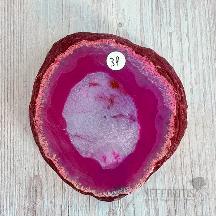 Atraktivní leštěný plátek achátu. Dekorativní prvek, který vzniká rozříznutím a leštěním přírodního achátu. Tento achátový plátek je dobarvovaný. Kupujete přímo vyobrazený kus.