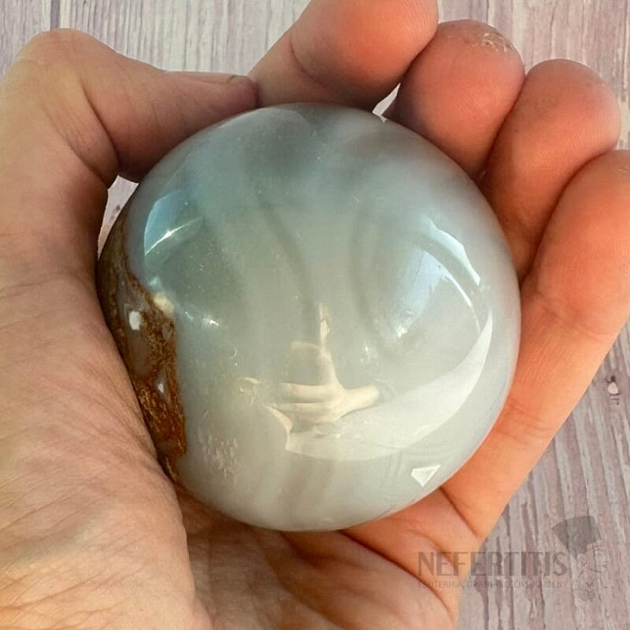 Leštěná koule z šedého achátu.