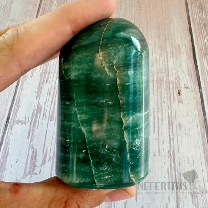Sbírkový ručně leštěný volný tvar ze zeleného avanturínu s překrásnou kresbou. Kupujete přímo vyobrazený kámen.