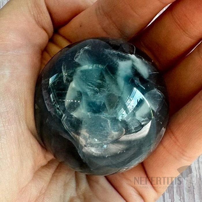 Sbírková koule z duhového fluoritu. Kupujete přímo vyobrazený kus.