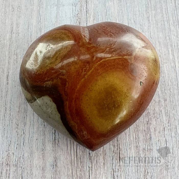Leštěný polychromní jaspis ve tvaru srdce výběrové kvality.