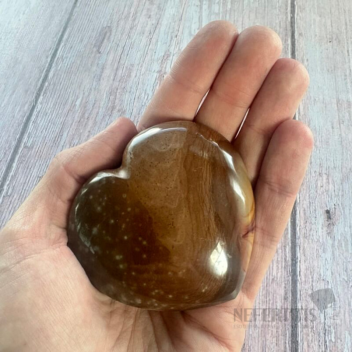 Leštěný polychromní jaspis ve tvaru srdce výběrové kvality.