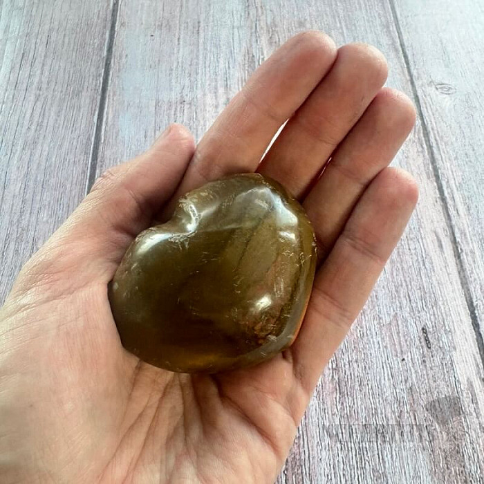 Leštěný polychromní jaspis ve tvaru srdce výběrové kvality.