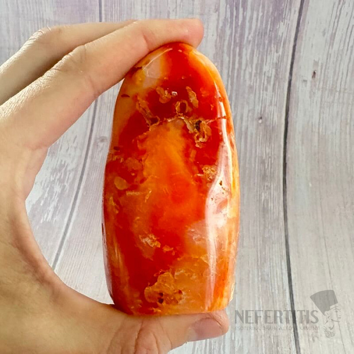 Leštěný freeform karneol. Červená je barvou vášně, lásky, energie a odvahy.