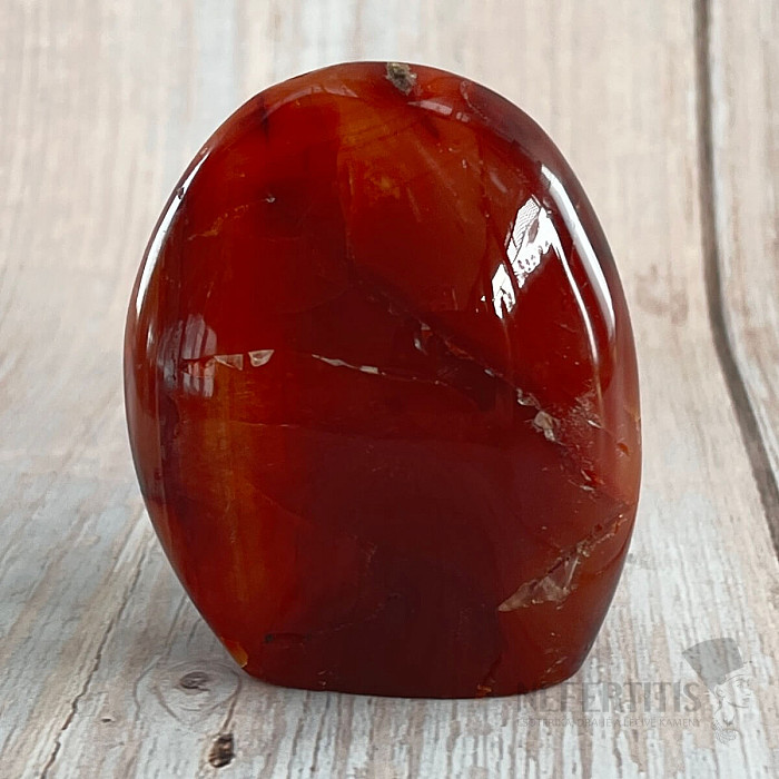 Leštěný freeform karneol. Červená je barvou vášně, lásky, energie a odvahy. Země původu: Madagaskar. Kupujete přímo vyobrazený freeform z karneolu. V kameni jsou dutinky, vlasové praskliny a drobné nerovnosti, všechny… více »