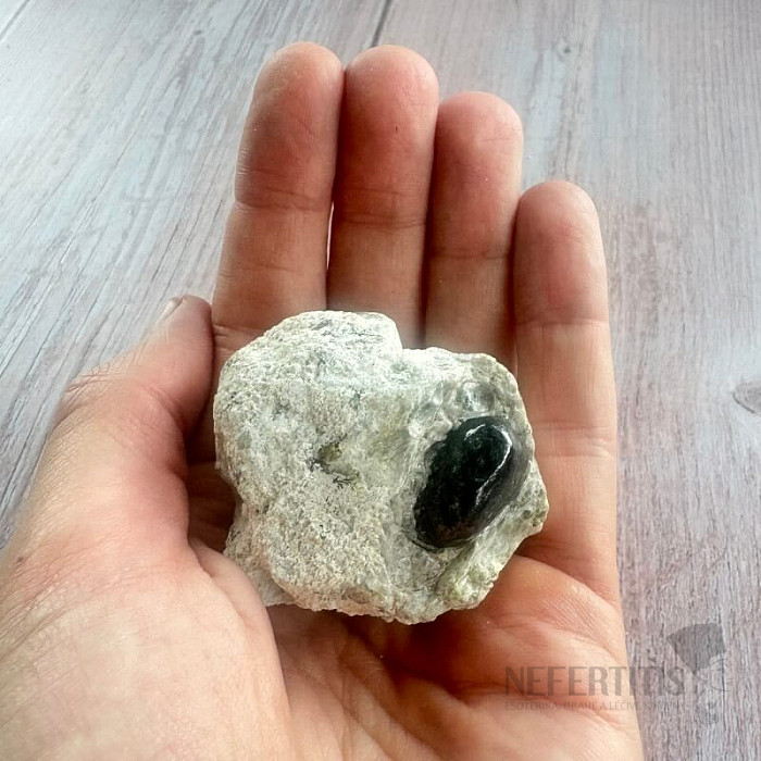 Obsidián Apačská slza v matrixu. Tento typ obsidiánu se vyskytuje pouze v Arizoně. Velikost cca 4,8 cm, slza cca 1,9 cm, 79 g.Země původu: USA, ArizonaKupujete přímo vyobrazený obsidián. Obsidián je vulkanické sklo, v… více »