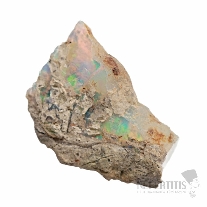 Přírodní etiopský opál v hornině v AA kvalitě. Pro tento opál je typická nádherná hra barev, patří k nejkrásnějším na světě.