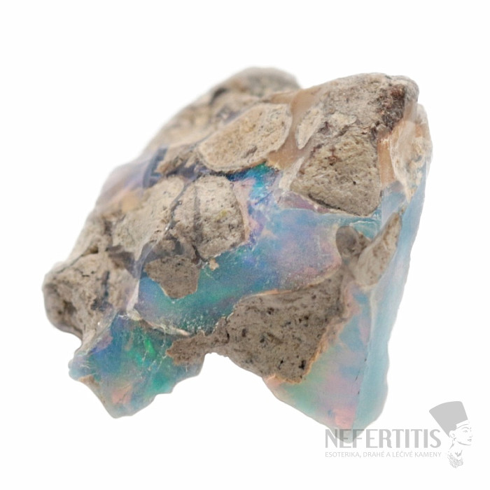 Přírodní etiopský opál v hornině v AA kvalitě. Pro tento opál je typická nádherná hra barev, patří k nejkrásnějším na světě.