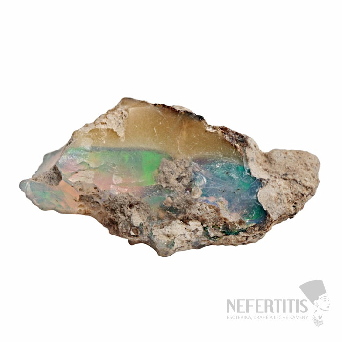 Přírodní etiopský opál v hornině v AA kvalitě. Pro tento opál je typická nádherná hra barev, patří k nejkrásnějším na světě.