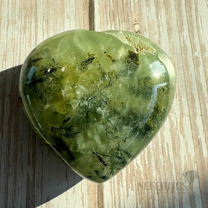 Sbírkové srdíčko z prehnitu. Kupujete přímo vyobrazený kus.