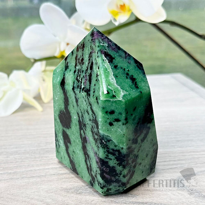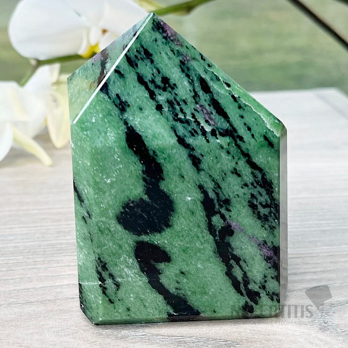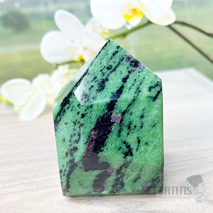 Sbírková špice - obelisk z rubínu v zoisitu. Kupujete přímo vyobrazený kus. Sleva z důvodu menší odřeniny, která nemůže být předmětem reklamace. Charakteristika rubínu: bohatství - touha - sexuální aktivita - energie… více »
