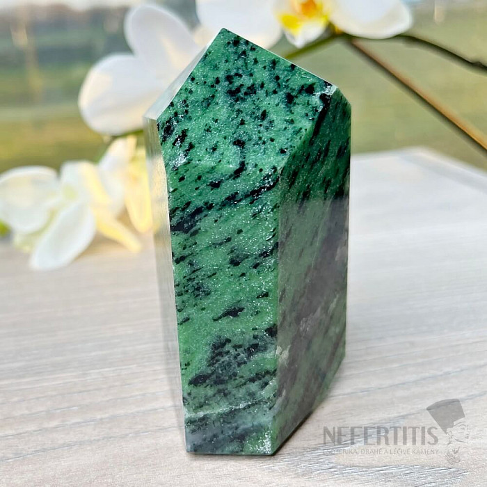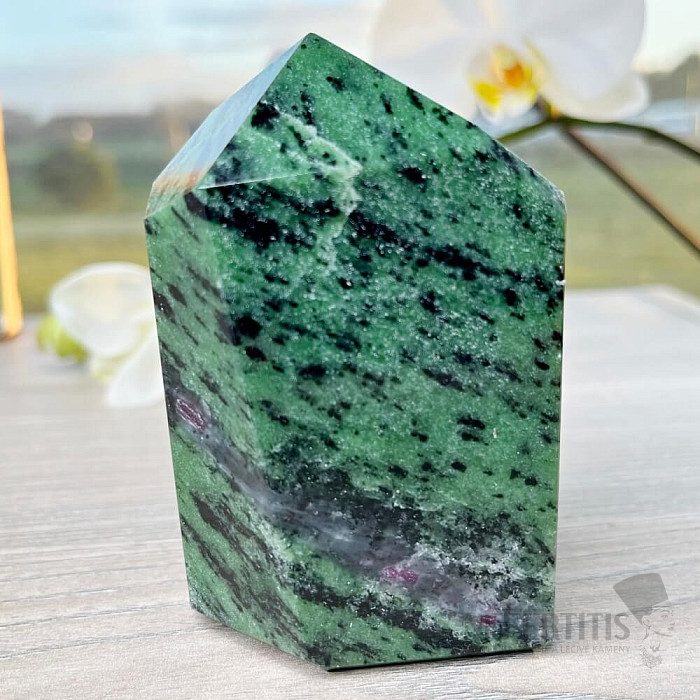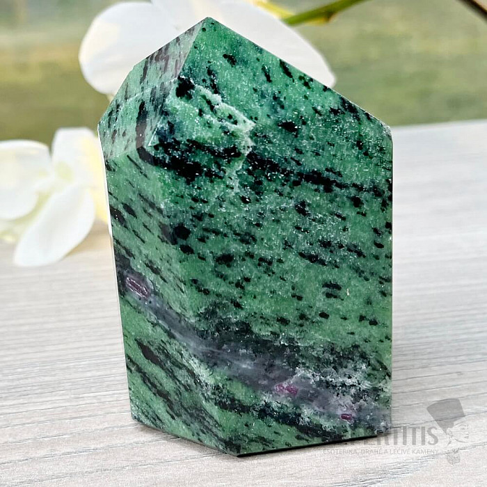 Sbírková špice - obelisk z rubínu v zoisitu. Kupujete přímo vyobrazený kus. Charakteristika rubínu: bohatství - touha - sexuální aktivita - energie - kořenová čakra - inspirace - Feng Shui element:… více »