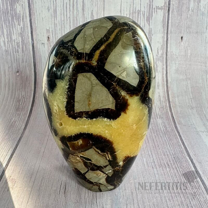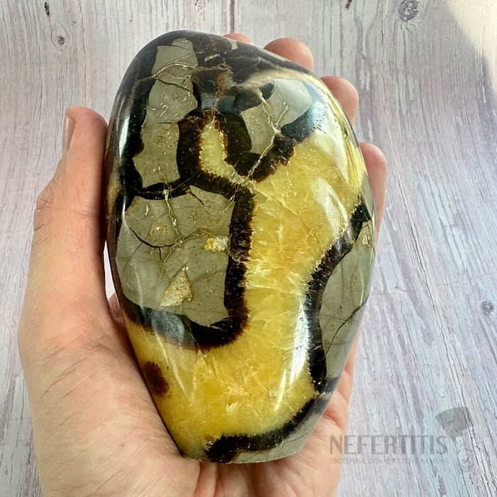 Leštěná septárie freeform ve výběrové kvalitě. Země původu: Madagaskar. Kupujete přímo vyobrazenou septárii. Charakteristika: uzemnění – uklidnění – komunikace – čakry: kořenová, sakrální a solar plexu - Feng Shui… více »