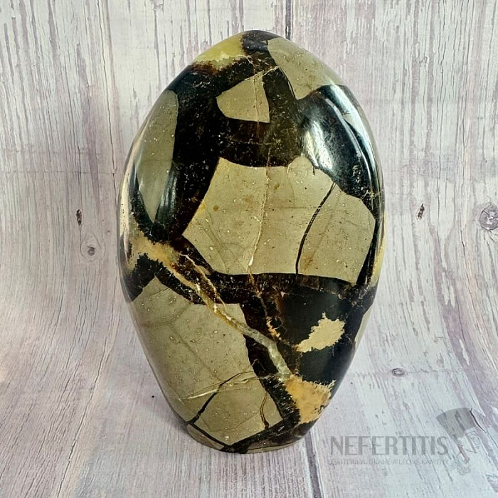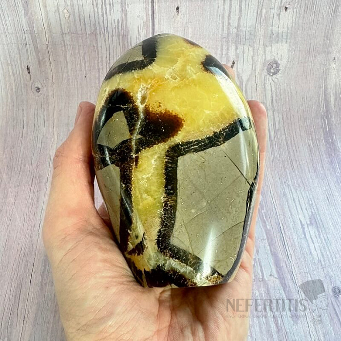 Leštěná septárie freeform ve výběrové kvalitě. Země původu: Madagaskar. Kupujete přímo vyobrazenou septárii. Charakteristika: uzemnění – uklidnění – komunikace – čakry: kořenová, sakrální a solar plexu - Feng Shui… více »