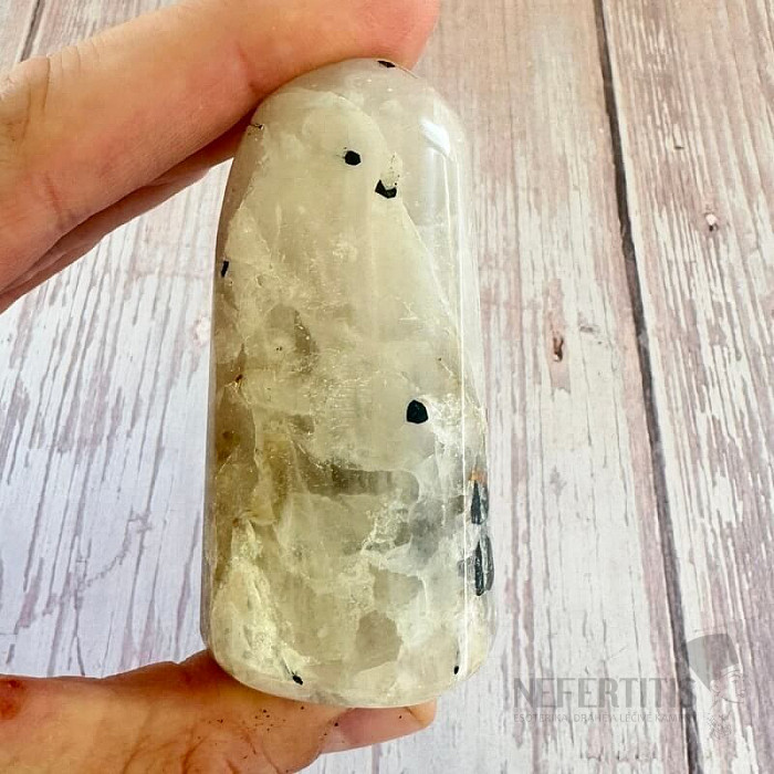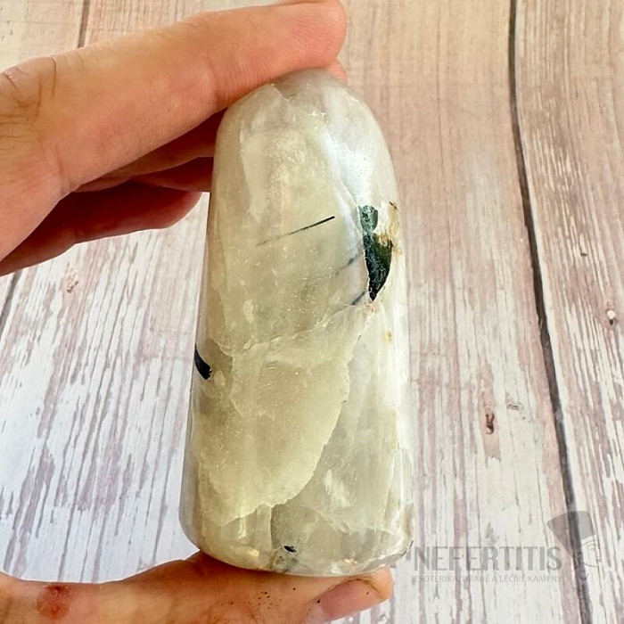 Sbírkový ručně leštěný volný tvar z turmalínu v křišťálu s překrásnou kresbou. Kupujete přímo vyobrazený kus. Křišťál s turmalínem spojuje v jednom krystalu vlastnosti křišťálu i turmalínu. Křišťál s turmalínem dle… více »