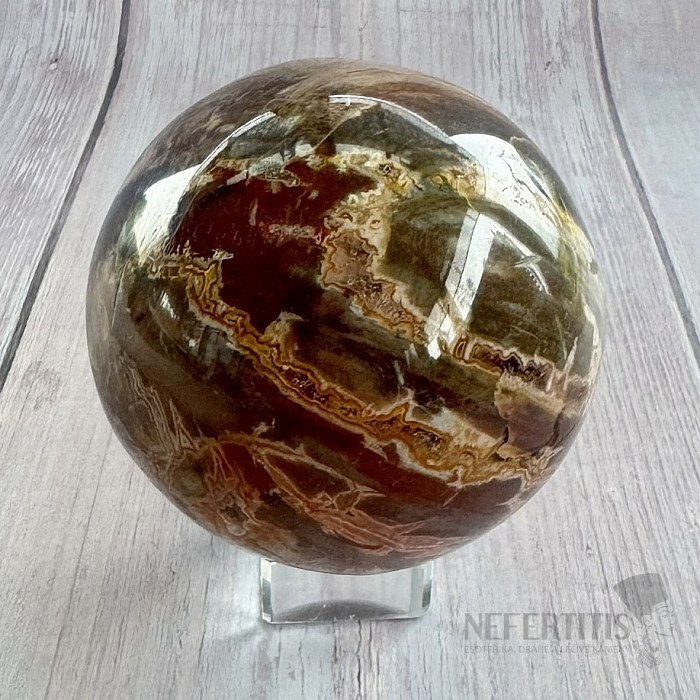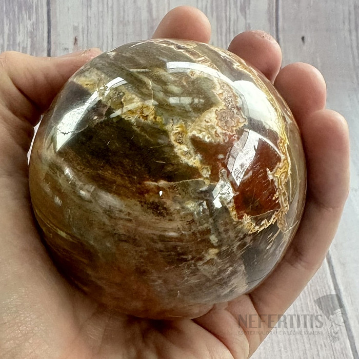 Leštěná koule ze zkamenělého dřeva.
