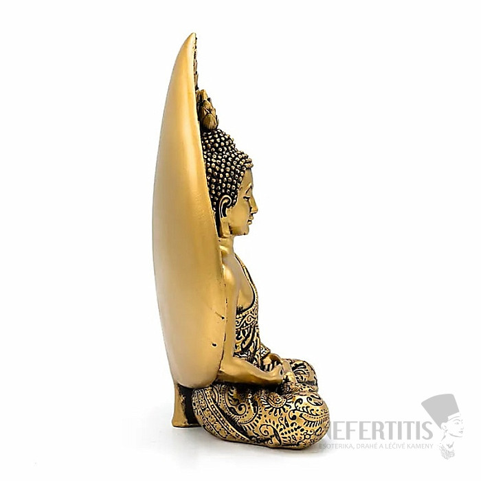Soška je zpracována s důrazem na jemné detaily: propracované thajské roucho, dekorativní textura povrchu, ornamentální prvky a jemná patina, která jí dodává autentický vzhled starého chrámového umění. Hmotnost je příjemně stabilní, takže se soška hodí na domácí oltář, relaxační prostor, pracovnu i obývací pokoj. Materiál: polyresin, rozměry: cca 10 x 17 x 24 cm. Ilustrativní vyobrazení.