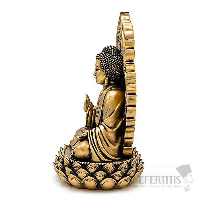 Každý kus je vyráběn s důrazem na jemné detaily – od precizně tvarovaných záhybů roucha až po realistické linie lotosového trůnu. Soška má příjemnou hmotnost a stabilitu, díky níž se hodí na oltář, do relaxačního koutku, obývacího pokoje i pracovna. Povrchová úprava a ruční patina dodávají soše autentický, duchovně laděný vzhled. Materiál: polyresin, odolná pryskyřice, rozměry: cca 15,5 x 19 x 27 cm. Ilustrativní vyobrazení.