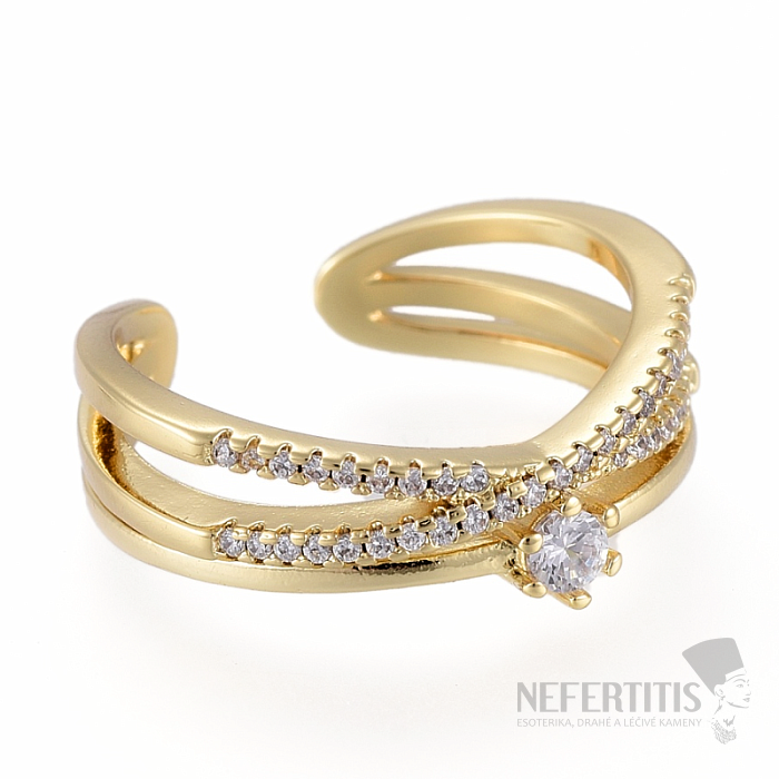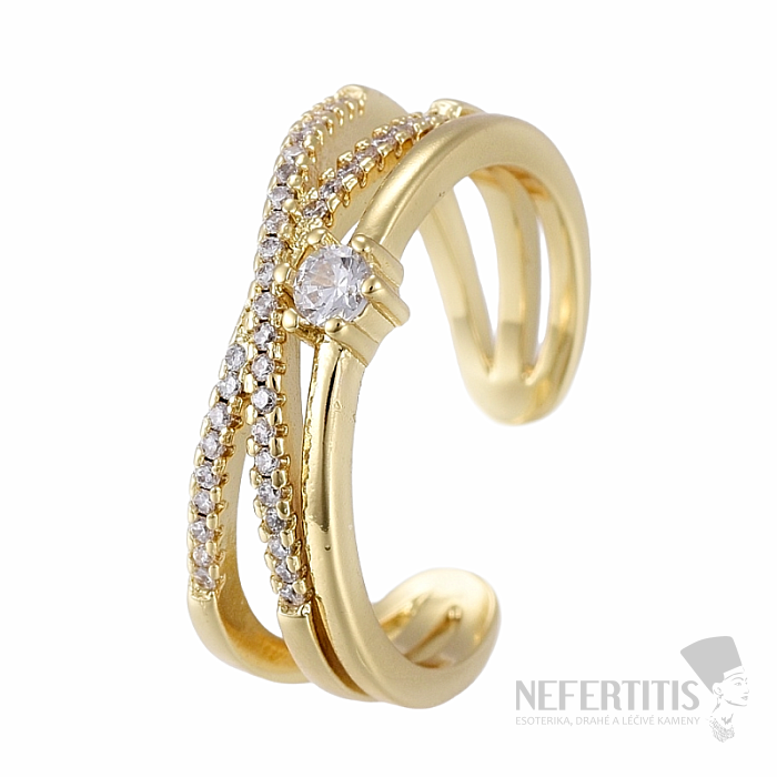 Dámský pozlacený prsten kubická zirkonie Criss Cross