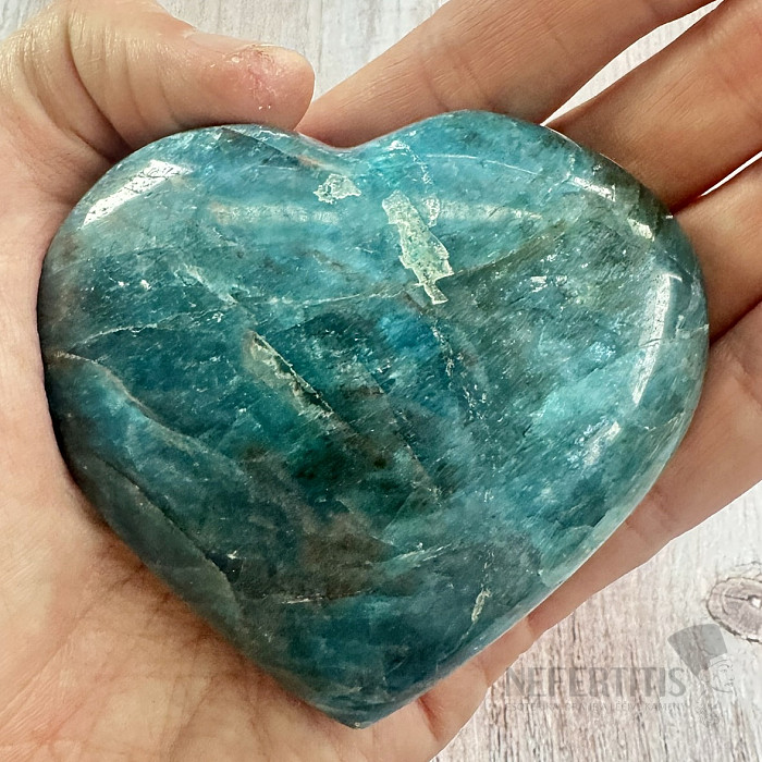 Leštěný apatit ve tvaru srdce výběrové kvality.