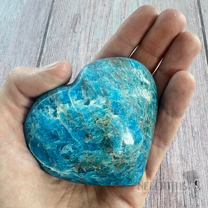 Modrý apatit je kamenem intuice, komunikace a osobního růstu. Pomáhá otevřít srdce i mysl, podporuje sebedůvěru a odvahu vyjádřit vlastní pravdu. Jeho energie propojuje duchovní vnímání s každodenní realitou a napomáhá hledání vnitřní rovnováhy. Toto srdce z apatitu z Madagaskaru je nejen nádherným dekoračním kouskem, ale i ochranným talismanem. Je vhodné pro meditaci, podporu sebevyjádření nebo jako dárek pro milovanou osobu.