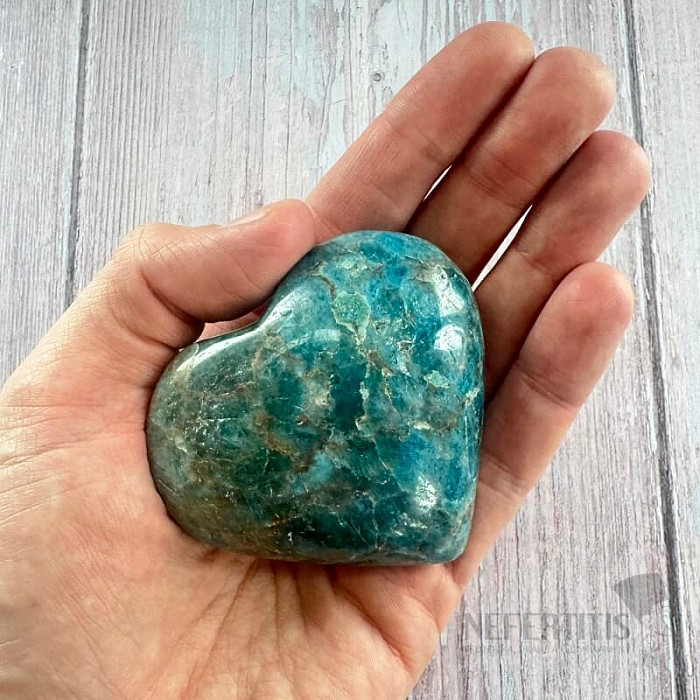 Leštěný apatit ve tvaru srdce výběrové kvality.