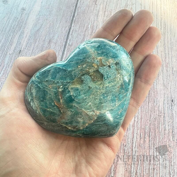Leštěný apatit ve tvaru srdce výběrové kvality.