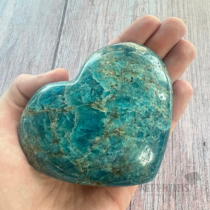 Leštěný apatit ve tvaru srdce výběrové kvality.