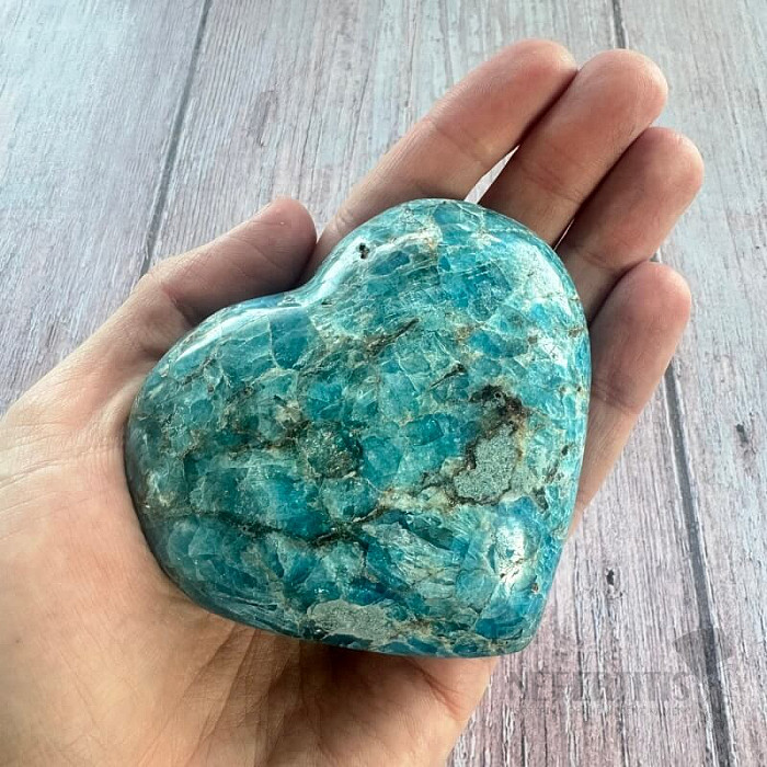 Leštěný apatit ve tvaru srdce výběrové kvality.