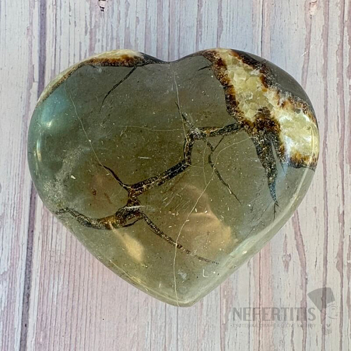 Krásné, ohlazené srdíčko ze septárie, výběrová kvalita. Každé srdíčko je pečlivě vybíráno, každý kus je originál.Země původu: Madagaskar. Kupujete přímo vyobrazenou septárii. Upozornění: kámen není dokonale ohlazený… více »