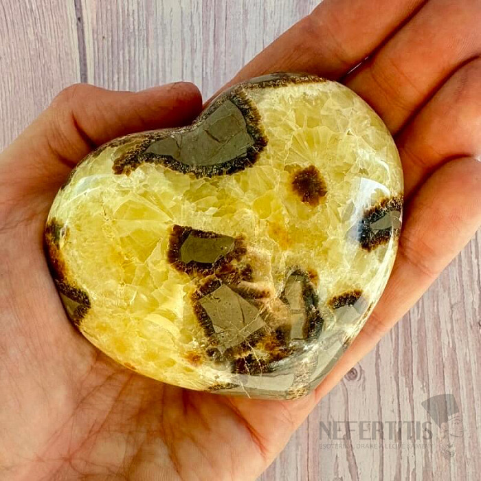 Krásné, ohlazené srdíčko ze septárie, výběrová kvalita. Každé srdíčko je pečlivě vybíráno, každý kus je originál.Země původu: Madagaskar. Kupujete přímo vyobrazenou septárii. Upozornění: kámen není dokonale ohlazený… více »