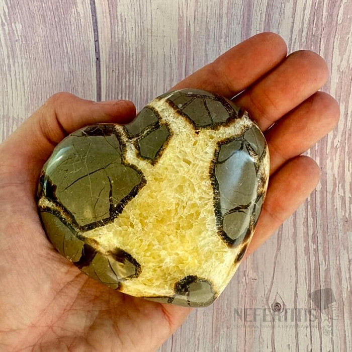 Krásné, ohlazené srdíčko ze septárie, výběrová kvalita. Každé srdíčko je pečlivě vybíráno, každý kus je originál.Země původu: Madagaskar. Kupujete přímo vyobrazenou septárii. Upozornění: kámen není dokonale ohlazený… více »