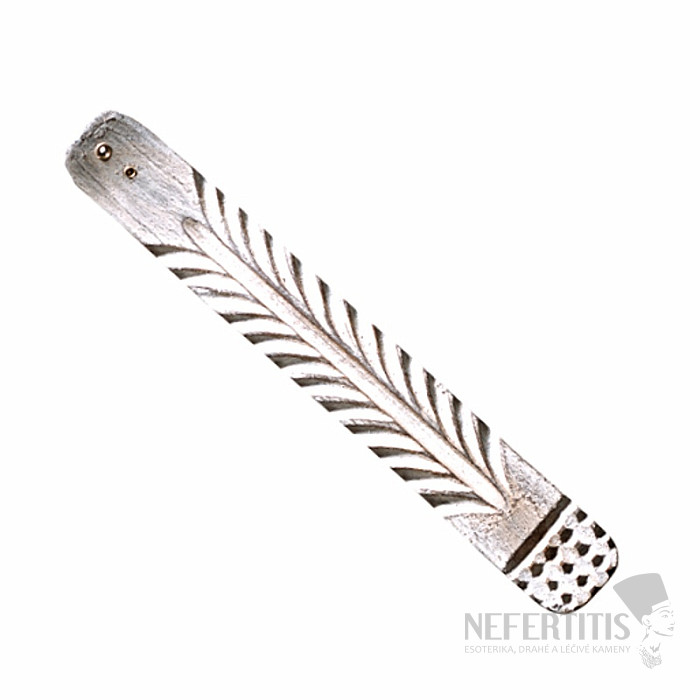 Objevte kouzlo jednoduchosti s tímto dřevěným stojánkem na vonné tyčinky zdobeným ornamentem ve tvaru pírka. Ručně zpracovaný z přírodního dřeva, které v sobě nese teplo a energii přírody, je nejen praktickým, ale i estetickým doplňkem pro váš domov. Ilustrativní vyobrazení.