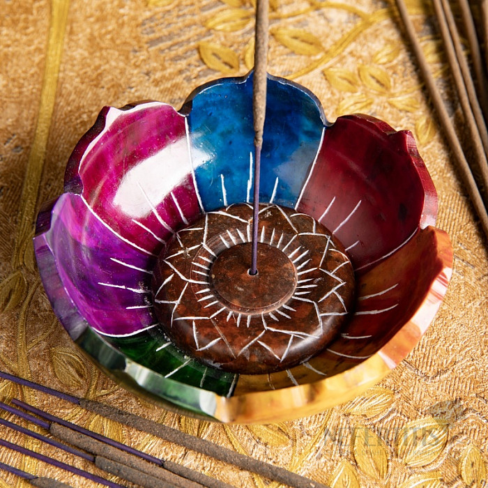Stojánek z mastku na vonné tyčinky Barevný lotos
